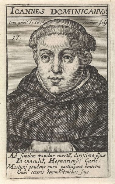 This is Jacob Matham’s portrait of H. Cornelius van Wijk bij Duurstede, made with engraving. The composition, tightly cropped, focuses on the face and upper torso, creating an intimate, almost claustrophobic encounter. The subject's gaze is directed slightly off-center, lending a sense of contemplative detachment. Matham’s skillful use of line is particularly striking; fine, dense hatching models the face, suggesting volume and texture. The stark contrast between light and shadow enhances the dramatic intensity, typical of the engraving medium. The inscription bordering the portrait adds another layer of semiotic complexity. The Latin text frames the image, anchoring it in a specific cultural and intellectual context. The use of language as a visual element invites us to consider how meaning is constructed through the interplay of image and text. Ultimately, the power of this portrait resides in Matham’s ability to create a compelling image through the language of engraving. It serves as a reminder that even in the most traditional of forms, the artist can destabilize our expectations and provoke new ways of seeing.