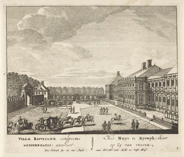 Editor: This print, titled "Gezicht op de Herengracht te Amsterdam, gezien richting de Leidsestraat (Gouden Bocht)," is an engraving created by an anonymous artist, likely sometime between 1710 and 1766. It depicts a canal scene in Amsterdam. What strikes me most is the use of perspective; the way the buildings diminish into the distance creates such depth. What do you see in this piece? Curator: Indeed. The receding orthogonal lines are crucial to the image's success. Observe how the artist employs linear perspective not just in the architecture, but also in the positioning of the trees lining the canal. Note how this methodical construction reinforces the pictorial space. What about the engraving technique itself? Editor: The precision of the lines is amazing! They vary so subtly in thickness and density to create areas of light and shadow. Does that meticulousness serve a specific function in the work? Curator: Precisely. It demonstrates a controlled rendering of form and texture that gives an illusion of depth. Consider also the even distribution of tonal values across the composition. This controlled application leads the viewer's eye uniformly throughout the depicted street view. It’s a deliberate and refined visual experience. Editor: It is quite refined. I hadn't considered the conscious manipulation through tonal value; thanks for pointing it out. Curator: A closer look can always reveal deeper strategies employed by the artist. The arrangement of elements—buildings, trees, figures— and the use of line contribute to a stable and ordered pictorial space. This structural analysis offers another interpretive tool. Editor: Definitely given me a new appreciation for just how constructed even the most natural-seeming scenes are.
