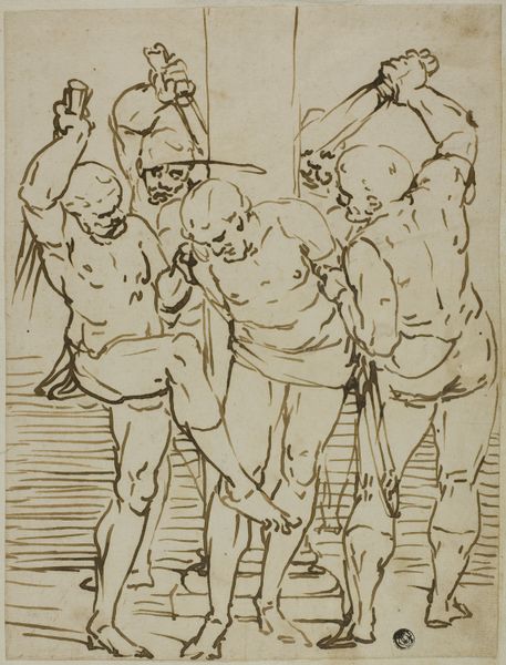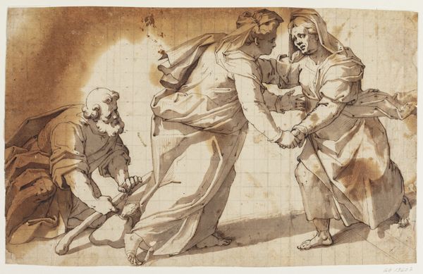 Adam Elsheimer made this drawing, The Denial of Peter, with pen and brown ink on paper. The artist’s hand is immediately evident in the quality of line and tonality that permeates the image. This is not merely a question of surface appearance. The density of the ink, and the way that it bleeds into the fibers of the paper, determine the very presence of the figures. You can see how the pen strokes are used to model the forms, to give them a sense of weight and volume. The density of the composition is remarkable, and it invites close looking. The use of ink on paper as a means of production is significant in itself. It speaks to a tradition of draftsmanship that predates mass production, reflecting the cultural significance of the handmade. The immediacy and simplicity of drawing tools allow for a direct connection between the artist's vision and its material realization. Paying attention to materials, making, and context helps us appreciate the full meaning of the artwork, challenging traditional distinctions between fine art and craft.