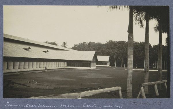 Carl J. Kleingrothe captured this exterior view of a fermentation shed in Padang Tjumin, Sumatra, with a camera, immortalizing not just a building, but a cultural crossroads. Observe the palm trees. These are more than tropical flora; they are silent witnesses, emblems of fecundity and colonial enterprise. Palm trees evoke a sense of exoticism, their presence signals the distant lands that have been shaped by global economic forces. Consider how these same trees appear in ancient Egyptian art, symbols of life and nourishment, then transported across oceans and ideologies to become emblems of leisure. It's a curious transformation, isn't it? A symbol rooted in survival now adorns postcards of paradise. In the collective psyche, the palm tree is a marker of 'elsewhere,' a dreamscape where reality blurs. It's the echo of ancient groves, reimagined in the context of empire, forever swaying between its sacred past and its commodified present.