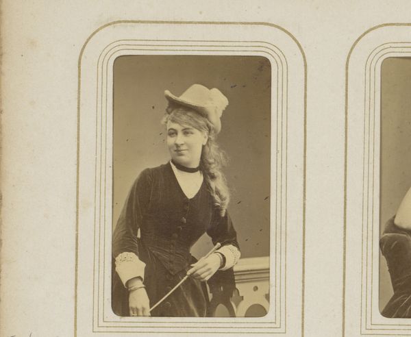 Editor: Let’s take a closer look at this portrait, “Portret van een meisje met hoed en een stok in de hand,” or “Portrait of a Girl with Hat and Stick,” created by J. Nuñez sometime between 1885 and 1900. It's a striking historical photograph. There's a fascinating, almost theatrical feel to it. I’m curious, what captures your attention most in this image? Curator: The theatrical air you've astutely observed immediately casts my mind to the dreams and role-playing that mark the borderlands of childhood. Observe the stick, brandished like a scepter or a mischievous conductor's baton, in contrast to the girl's attire. It's a symphony of youth experimenting. Don’t you think there's a lovely tension between the stillness demanded by early photography and the vibrant spirit straining beneath? Editor: I definitely see that now. The formal pose almost clashes with what I imagine was a lively personality. Did photographers often aim for this kind of staged contrast, or could it be more about the limitations of the time? Curator: It's a dance between necessity and artistic intention, really. While longer exposure times dictated some level of stillness, photographers were very aware of crafting an image. It reminds me a little of those family portraits where everyone tries so hard to look serious, yet their true personalities peek through, regardless. I wonder what she dreamt of being. A explorer, a queen...or both? Editor: It definitely makes me appreciate the art behind capturing even seemingly simple portraits. It feels less like just a record and more like a story. Curator: Precisely! Isn’t it wonderful when art whispers secrets from the past that continue to tickle our imagination today?