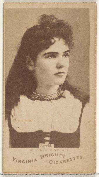 This sepia photograph of the actress Bujardia, a promotional card for Virginia Brights Cigarettes, captures her in a poised, introspective gaze, adorned with a pearl necklace. The pearls, far from being mere decoration, speak volumes. Consider how pearls, often associated with purity and tears, have been depicted across time. Botticelli's Venus, for instance, emerges from a shell, a parallel to the pearl’s own creation, symbolizing beauty born from the depths. Yet, Ophelia, driven mad, is often portrayed with pearls, hinting at sorrow. Here, the pearls around Bujardia's neck act as a delicate boundary, a subtle shackle perhaps, hinting at the constraints placed upon women in the performing arts, forever caught between adoration and objectification. The image resonates with a silent, melancholic beauty, a tension between visibility and inner life, compelling us to reflect on the emotional depths beneath the surface.