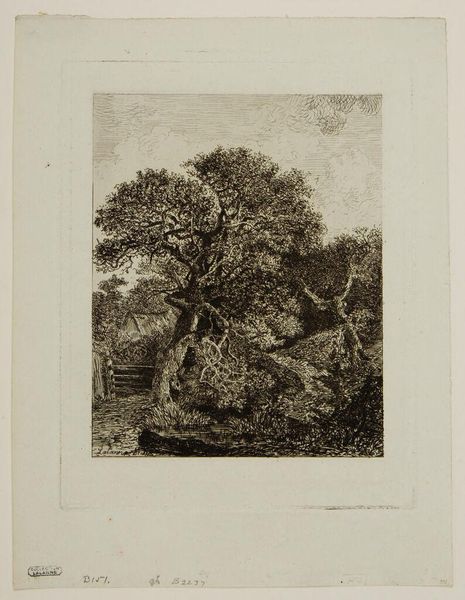 Curator: Charles André Malardot's "Pêcheurs au bord d'un étang dans le bois" presents a tranquil scene of fishermen by a pond within a dense forest. Editor: It's a very shaded image, almost claustrophobic, yet there's a sense of labor—a kind of pastoral simplicity. Curator: It evokes the complexities inherent in representations of labor and leisure; who is afforded the privilege of nature, and what narratives are constructed around that access? Editor: The detail in the trees contrasted with the almost sketch-like figures emphasizes the relationship between man and nature. It feels like the fishermen are simply part of the landscape’s materials. Curator: Precisely. It invites us to consider the relationship of the fishermen not just to nature, but within a broader societal hierarchy. Editor: I am struck by how the natural materials used to create it mimic the naturalism of the scene, the ink itself seems part of the pond and woods. Curator: A fascinating point; considering materiality through the lens of eco-criticism further enriches our understanding. Editor: Indeed, understanding art as a convergence of social narrative and material presence allows a fuller experience.