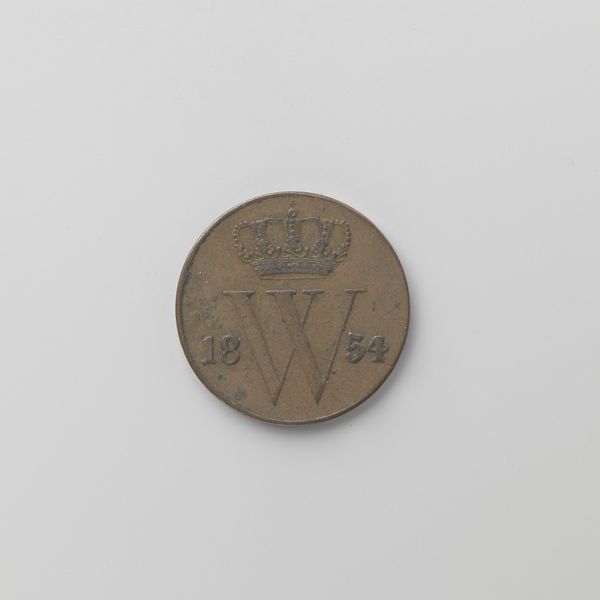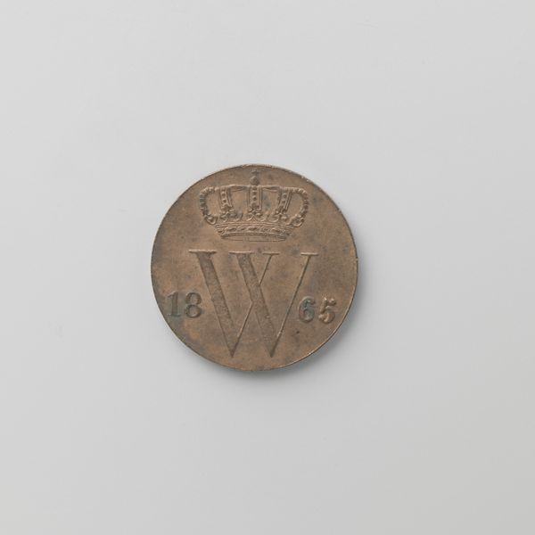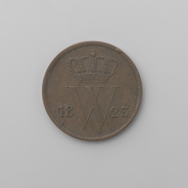 Curator: This is a Dutch 25-cent coin from 1830, currently held at the Rijksmuseum. It depicts Willem I, King of the Netherlands. Editor: It looks so ordinary at first glance, yet the level of detail achieved through metal engraving is remarkable. The coin's surface bears the weight of time and daily transactions. Curator: Absolutely. These coins circulated during a period of significant economic and political change. The Dutch economy was shifting, and these coins were essential tools for trade and governance, signifying the state's presence in daily life. The choice of Neoclassicism is evident in the carefully composed design and serves to emphasize royal authority and stability through an association with historical empires. Editor: Indeed. Think of the skilled labor and the technology required to produce such a precise and durable object back then. The mint workers, the metallurgy – all that craft concentrated into a single coin, moving from hand to hand. Consider also the availability and processing of the silver used. These aren't just aesthetic objects; they tell tales of material exploitation. Curator: Precisely. Furthermore, currency is designed to foster trust. So its images are part of how political and social ideologies circulate, literally, amongst a population. Each image selection served a particular message. Coins are part of a larger system of social control that supported a new social contract. Editor: Seeing it in the gallery now, protected behind glass, we disconnect it from that original utilitarian context. But for a moment, consider its real value – how many hours of labor did it represent? What kind of power did its possession grant? Curator: Those questions give valuable historical context to the image displayed. They also emphasize its dual role both as an object and symbolic tool for establishing authority. These elements helped consolidate national identity. Editor: I'll certainly think twice about the weight and making of every coin I encounter from now on. Curator: Me too. I think it provides important considerations on how symbols influence societal perceptions during historical inflection points.