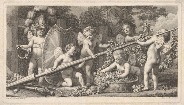Israhel van Meckenem created 'The Children's Bath' around 1475 using the technique of engraving. This printmaking process involves incising an image onto a metal plate, inking the plate, and then pressing it onto paper. The controlled lines we see here are a direct result of the engraver's hand, carefully carving each stroke. The image is rich in detail, from the textures of the wooden tub to the delicate features of the figures, all achieved through the precise manipulation of the metal plate. Engraving in the 15th century was a highly skilled craft, requiring years of training and a deep understanding of metallurgy and printing. Van Meckenem was one of the most prolific engravers of his time, and his prints were widely circulated, making art accessible to a broader audience. The labor-intensive process, typical of early printmaking, reflects a pre-industrial era where craftsmanship and manual skill were highly valued. This print stands as a testament to the intricate relationship between material, process, and the social context of its creation.