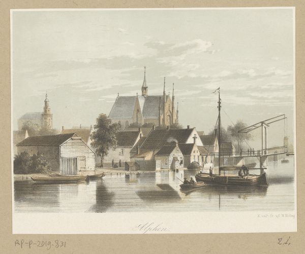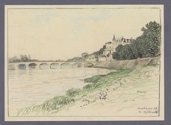 Editor: This is Albert Lang’s watercolor and pencil drawing, “Ochsenfurt am Main.” I am immediately struck by how tranquil the image feels, even though it’s a cityscape. What’s your interpretation of it? Curator: It invites a reading of landscape art’s role in nation-building, doesn’t it? How does Lang depict this German city? Consider the perspective: it’s not a heroic, monumental view, but a gentle, intimate portrayal. It speaks to the burgeoning Romanticism of the time. Editor: Romanticism focused on emotions and nature, right? Curator: Precisely. But, let’s dig deeper. Notice how Lang uses soft colors and delicate lines. What impact do you think that has on the viewer's perception of the city? Is it simply a representation of Ochsenfurt, or is it something more? Does it feel propagandistic to you, or is it softer, domestic, nostalgic? Editor: I see what you mean. It feels more like an idealized memory, not a political statement. The reflections in the water create this doubled effect which blurs any hard edges. Curator: Exactly. And isn't that 'blurring' important? Lang’s work taps into a longing for a unified cultural identity, where the specifics of labor and class become subsumed within this collective nostalgia. How effective do you think that strategy is? Editor: That's a powerful insight. I hadn't considered the underlying social context and that tension. It changes how I see the drawing entirely. Curator: Art is always a conversation, isn’t it? Examining historical contexts helps reveal its complexities and, ultimately, helps us better understand ourselves and our history.