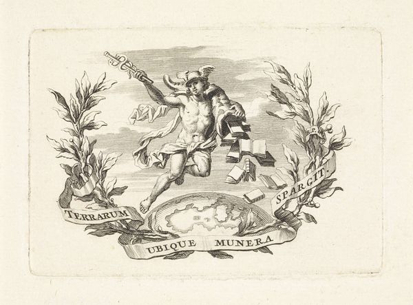 Editor: So, here we have "Willem den eersten," a drawing in ink on paper by Jan Oortman, created sometime between 1831 and 1854. It's a portrait, but within this elaborate landscape setting... it almost feels like looking at a stage production. What catches your eye about this piece? Curator: It whispers to me of Dutch pride, a little bombastic, don't you think? It is like stepping back into a time of nascent nationhood. I find myself drawn to the composition: a king regally framed amidst symbols of both nature's bounty and military strength. The drawing is intricate and academic in style, very neatly executed. Do you notice the almost playful juxtaposition of war and peace in the emblems chosen for the frame? What does the 'JE MAINTIENDRAI' motto suggest to you, framed like that beneath the King? Editor: I do now! The juxtaposition seems intended to project the King’s strength, I suppose - it is kind of boasting and claiming resolve. But something about it also feels quite old-fashioned, even for the 1830s. Was this kind of representation common at the time? Curator: Absolutely! Consider this piece as a form of visual propaganda, aimed at solidifying the monarchy's image during a period of political transition and nation-building. The academic approach adds gravitas to the subject; the king must be elevated. To me it echoes earlier eras, yes, which perhaps suggests some unease among the Dutch, in needing to constantly re-assert their values. It also resonates, personally, with my grandmother’s garden. Neat. Regimented. Perfectly ordered. Editor: Interesting, I hadn't considered it that way. I was focusing on the detail within the frame, not so much *why* it was included. Curator: Precisely! Art's all about peeling back the layers, and what you, the viewer, bring to it as well! So, did our chat give you a different insight today? Editor: Definitely. I am definitely taking my grandmother to the Rijks next week!