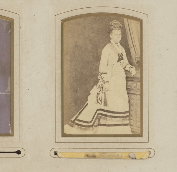 This is H.J. Tollens' photograph 'Portret van een staande vrouw met handschoenen, paraplu en hoed'. It presents a standing woman dressed in a formal gown, gloves, hat and holding a parasol. The portrait seems to belong to the late nineteenth century, when photography became more accessible. This meant that the middle class acquired the ability to produce and disseminate their own images. Photography studios flourished as a result. The very act of capturing and preserving the image of a person or a moment became democratized. Before this period the pictorial image was the strict preserve of the upper classes. Photography became a tool to document not only the likeness of a sitter, but also a medium for conveying social status through carefully chosen clothing and props. This artwork gives insight into the cultural and institutional forces that shaped the production of images and their social meanings. To understand this better, we can look to fashion history, studies of photography, and social histories of the late nineteenth century.