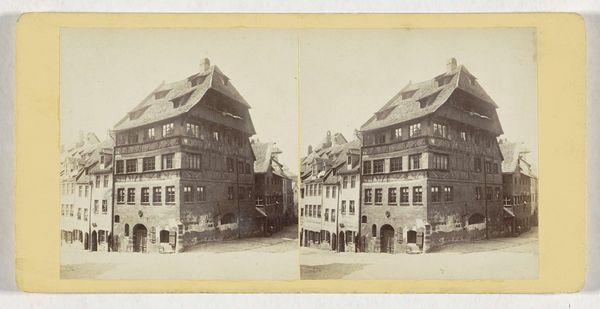 This stereoscopic image shows the Kornmarkt in Nordhausen, Germany, and was produced by H. Selle. Stereoscopic images such as this one were designed to give the viewer an enhanced sense of depth, immersing them in the scene. Consider how the commercial success of this format shaped the development of photography, creating a demand for picturesque views of cityscapes like this one. What assumptions do you think the makers of this image had about what its viewers wanted to see? Notice the signs of commerce in this image, such as the hotel on the right, and the planters set out to decorate the square. How might the social and economic life of this German town have shaped its physical appearance? Photographs like this one are valuable historical resources, offering clues about the everyday lives of people in the past. By consulting historical documents such as city directories and census records, we can gain a richer understanding of the world captured in this image.