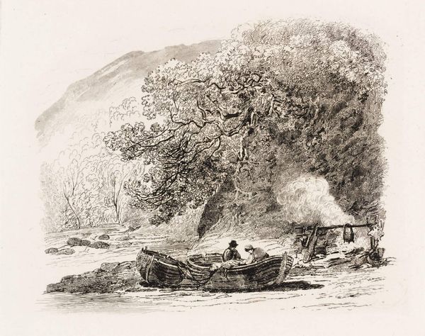 Editor: This is Peter De Wint’s "Scene on the Beach at Ventnor." It's a detailed little drawing, and I'm really drawn to the textures he creates, especially on the cliffside. What can you tell me about the materials or the making of this work? Curator: Consider the socioeconomic context. Who was buying such images? What sort of labor produced the paper and ink? Were these images for personal enjoyment, or did they serve a different purpose in Victorian society? Editor: So, looking at it as a commodity and a product of labor changes how we see it? Curator: Precisely. It reframes our understanding of De Wint's artistic choices. Rather than focusing on artistic genius, we can examine how the production of this image reflects broader social and economic structures. Editor: That's a completely different way of thinking about art! I appreciate you bringing that up. Curator: Absolutely! Considering the means of production adds depth to our understanding.