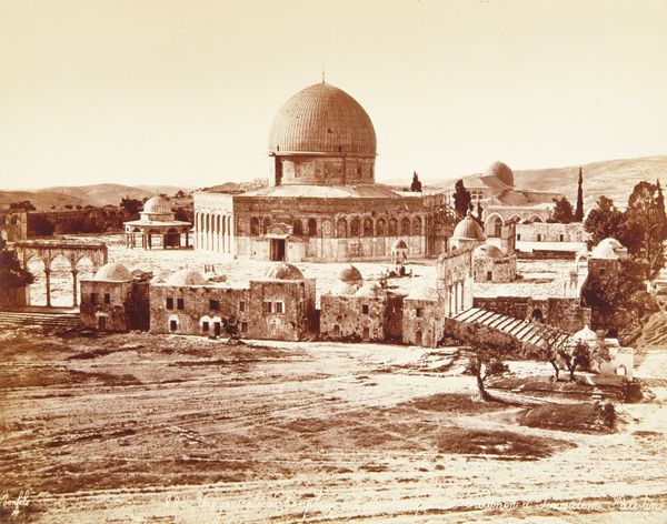 Curator: Editor: This is "Jerusalem from the City Wall," a photograph taken by Francis Frith in 1857. It's a beautiful albumen print that captures the cityscape in great detail. I’m struck by how this seemingly neutral landscape inevitably participates in complex Orientalist narratives and raises questions about power. What do you see in this piece? Curator: Beyond the visual allure of the scene, I see a powerful intersection of art, politics, and colonial ambition. Frith, as a British photographer, was working within a specific historical context. Consider the role photography played in constructing Western perceptions of the “Orient” during the age of imperialism. How does this image contribute to or challenge those perceptions? Editor: It feels romanticized, yet also distanced, like observing a scene rather than participating in it. The framing almost puts the viewer in a position of power. I am starting to question the context in which photographs are shown and disseminated as much as their inherent value. Curator: Exactly! It's crucial to question that vantage point. The photograph aestheticizes a landscape ripe with religious and cultural significance, potentially flattening the lived realities of the people there. It also presents the city as timeless and unchanging. Where does it position the West in relationship to this seemingly eternal space, and what does this representation elide? Editor: So, it’s not just a pretty picture, but a loaded representation, actively participating in a bigger power dynamic. I hadn’t fully appreciated how seemingly straightforward images could be so deeply implicated in colonialism and cultural narratives. Curator: Precisely. It prompts us to think critically about the photographer's intent, the viewer's interpretation, and the historical forces shaping both. What do you think the role of museums should be in handling these difficult, if visually beautiful, works? Editor: I suppose the responsibility would be to present it in context, acknowledging the biases and power structures at play when displaying items from another region. I will surely consider photography through a decolonial lens from now on. Curator: That’s a valuable takeaway, isn’t it? Understanding that what we see is always filtered through a lens of power and perspective, it challenges our engagement with the image in powerful ways.