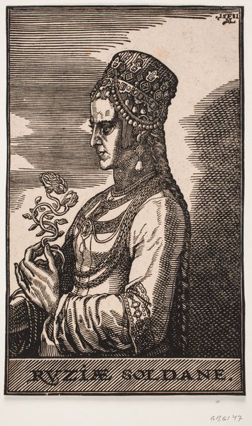 Curator: Looking at this, my immediate sense is one of intense concentration. A kind of… stillness, even in the flowing lines. Editor: That's interesting, especially considering we're viewing Melchior Lorck's 1581 woodcut, "Sultanindeportræt, profil mod v.: ACHADA SOLTANE," now housed at the SMK, or the National Gallery of Denmark. It’s a striking portrait. Curator: A Sultan’s portrait made with woodcut…a sort of democratic technique, don’t you think? Humble origins elevating this figure—all this detailed labor rendered through, shall we say, a somewhat workaday medium. Editor: Absolutely. It's a fascinating interplay. Woodcuts were reproducible, cheaper, a very accessible print medium—imagine the labor involved in those fine lines replicating the sitter’s royal stature and Ottoman opulence. It raises the question of consumption—who exactly was intended to view this image, and what did its reproduction mean? Curator: The detail in the headdress, particularly, makes me think about the artist's relationship to the subject. Was this drawn from life, or compiled from travelers' tales, descriptions, perhaps even earlier, now lost, images? Did Lorck, perhaps, even see some other kind of art and felt something similar when drawing this art? What were his influences? Editor: It seems, in fact, to stem from Lorck’s time as an emissary from the Danish King to the court of Suleiman the Magnificent in Constantinople. This context changes how we interpret the piece! A Dane embedding himself to render the culture around him to others. Curator: You're right, context is everything. It adds another layer, makes it not just about capturing an image, but sharing or mediating cultures, bridging understanding across civilizations separated by distance and prejudice. To witness and convey the majesty and power but reduced to a print shows such perspective on our relationship to labor! Editor: And, returning to the materiality, it forces a question. Lorck was undoubtedly influenced by those that held the original figure—was he also influenced by the craftsmen that labored day in and day out, repeating the forms and patterns of the Islamic empire into common life? How can we measure the artist against such unseen influence? Curator: Food for thought. Ultimately, I leave today not just considering one powerful portrait but now a broader understanding of human creativity and exchange across diverse realms and crafts and, perhaps, beyond that as well. Editor: Precisely—it speaks volumes about how the "everyday" and "art" are produced through collective imagination and effort.