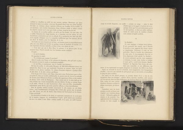 Curator: This lithograph by Jules Gervais-Courtellemont, made before 1893, is titled "Women and children in a house in Kabylia, Algeria." Editor: The composition immediately strikes me. Despite the intimacy of the domestic scene, there’s a certain remoteness. The figures are rendered with such fine, almost clinical detail, creating a sense of distance between viewer and subject. Curator: Indeed. Courtellemont’s orientalist approach frames the inhabitants almost as specimens, observed and documented with ethnographic precision, reflecting a particular power dynamic. Note how he employs contrasting textures and light to delineate interior versus exterior space, emphasizing the staged quality of the scene. Editor: I find it difficult to ignore the loaded history embedded within these “genre paintings.” What stories do these women and children hold that are consciously omitted? Considering this work through a postcolonial lens reveals troubling aspects, especially the artist’s gaze and how it may exoticize the subjects. Curator: I see your point. However, considering the lithograph as an example of period draftsmanship and composition, one appreciates the complexity of the space. The artist utilizes the stark black and white to explore the depths and surfaces within the domestic enclosure. Editor: Even as we appreciate its technical mastery, can we really separate the artistic intention from its broader socio-political ramifications? How did this imagery function to reinforce colonial attitudes and justify occupation? These are critical questions that need to inform how we engage with this print. Curator: You make a compelling case. Reflecting on our discussion, I see how the stark rendering, while admirable technically, creates a kind of emotional detachment, hinting at that power imbalance. Editor: Ultimately, looking at it now, the image leaves me with a deep sense of the untold. I see resilience etched into the faces of these women and children.