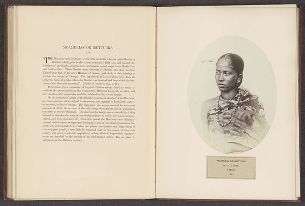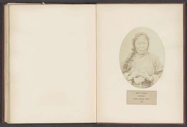 This is a photographic portrait of an unknown Mishmi woman with a pipe from Assam, captured by Benjamin Simpson. The oval frame, with its sepia tones, centres our attention on the sitter, whose form is further emphasized by the soft light that delicately models her features. The composition hinges on a play of contrasts: the smooth curve of her cheek against the sharp angles of the pipe, the dark fabric of her jacket offset by the lighter tones of her skin and the background. These formal elements create a dynamic tension, inviting us to consider how such carefully constructed images engaged with broader cultural discourses around identity and representation. The photograph, beyond its aesthetic qualities, prompts questions about the power dynamics inherent in the act of portraiture during this period, and the construction of ethnographic narratives. It serves as a reminder that every artistic decision carries ideological weight, influencing how we perceive and understand the world around us.