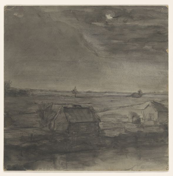 Curator: Editor: This is Pauline Kowarzik’s "Building site of I. G. Farben," created in 1929 with colored pencil, pastel and paper. It gives me the chills with its eerie lighting, what strikes you first? Curator: What do you make of the intense focus on process evident here? The layered pastels, the drawing emerging from the page? This isn't just a representation; it’s about the act of construction, both of the building and of the image itself. Consider I.G. Farben as a conglomerate, a titan of industry, crucial to Germany’s war effort, produced Zyklon B… Editor: So you are suggesting it’s less about the aesthetics and more about what is actually happening. The materials represent labor itself? Curator: Exactly! Kowarzik’s rendering shows the *means* by which such an entity came into being; those ephemeral strokes mirror labor in a specific moment and reflect both promise and a troubling potential. What's produced, and the *how* it's produced—are inextricable. The artist is foregrounding material process and socio-economic conditions. Editor: Wow, that makes me see it in a completely different way. I was initially focusing on its abstract qualities, but understanding the materiality of art brings a heavier, and very pertinent dimension. Curator: Precisely! Kowarzik prompts us to question the values and human cost embedded in every brick, in every pencil stroke. It's about accountability and art’s place within production, not just in a gallery. Editor: This has given me a lot to think about. Thanks for digging a bit below the surface. Curator: Likewise; every interaction transforms and enriches art for us all.