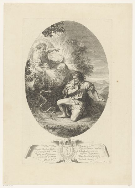 Editor: Here we have Jeremias Wachsmuth's engraving, "Minerva wijst een jongen op Vadertje Tijd die voorbij vliegt," made sometime between 1721 and 1771. It's teeming with figures from mythology. The scale is relatively small, but the allegorical figures feel very imposing and carry heavy historical weight. What story do you think this engraving is trying to tell, and what's its connection to the era in which it was created? Curator: Well, seeing Minerva, or Pallas Athena, pointing a youth toward Father Time is inherently about the didactic role of art. Wachsmuth produced this during a period when printmaking was increasingly influential in shaping public opinion and disseminating knowledge. Consider this piece as part of that broader phenomenon. Editor: So, it's essentially propaganda, then? Teaching morals but in a visual and aesthetically pleasing form. Curator: It’s more nuanced than that. "Propaganda" carries a heavy connotation today. Think about how academies of art were shaping artistic ideals during the 18th century. Works like these, circulating through prints, were helping to codify those ideals, visually teaching about civic duty and the acceptance of societal hierarchies and morals, framed in the guise of classical wisdom. But does the way Time is rendered here -- somewhat feeble looking atop clouds -- suggest a certain attitude to temporal power, too? Editor: That's interesting. I was focused on Minerva, but you're right. Father Time seems… powerless almost. Curator: It invites us to contemplate where power truly lies and what the intended audiences may have derived from the image, particularly if you consider who had access to prints during that era. It's a visual lesson geared towards a very particular segment of society. Editor: I didn't realize the figures pointed at society itself. Seeing it as part of a broader dissemination of knowledge really reframes my understanding of it. Thank you! Curator: And recognizing how an artwork functions within networks of power, production, and reception illuminates its lasting, but always contingent, relevance.