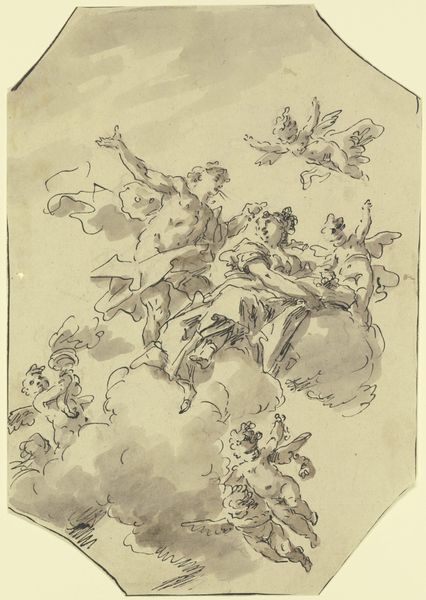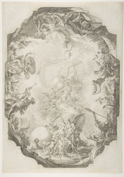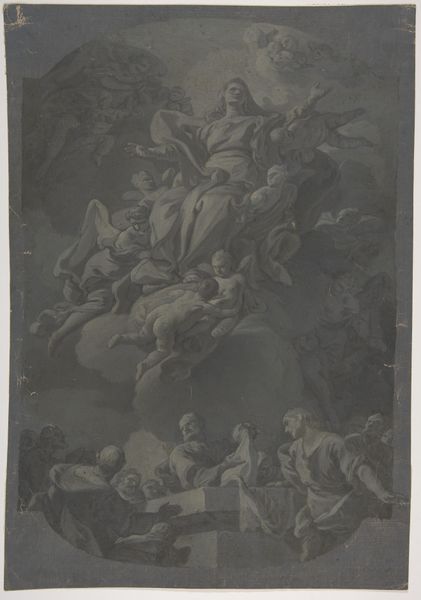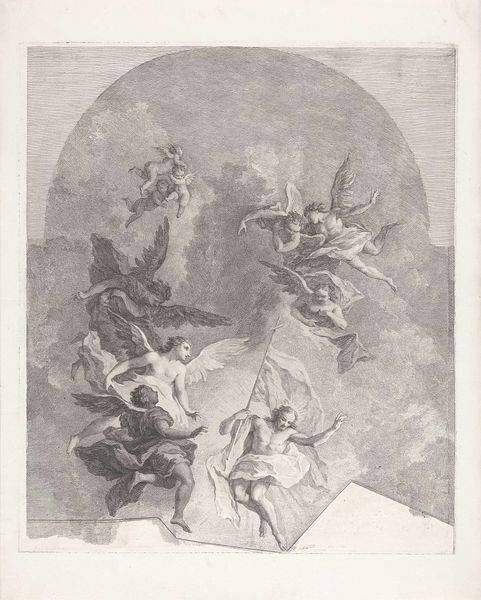 Francesco Bartolozzi made this etching, "Diana and her nymphs on clouds," in 1785. The Italian artist spent much of his career in London, becoming a founding member of the Royal Academy of Arts. Here, Bartolozzi renders a scene of classical mythology with all the grace and elegance of the late 18th century. Diana, the Roman goddess of the hunt, is pictured with her entourage, floating amongst the clouds. Note how the figures are idealized, their forms soft, and their expressions serene. This work reflects the period's fascination with classical antiquity and the art academies' power to shape artistic taste. The print medium also speaks to the rise of a broader art market and the desire to disseminate images widely. To understand this artwork better, one could research the history of the Royal Academy, the market for prints in 18th-century England, and the classical sources that inspired artists like Bartolozzi.