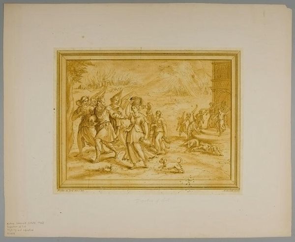 Curator: Take a moment to contemplate Adam von Bartsch's "Agony in the Garden," housed right here at the Harvard Art Museums. Editor: It's striking how the delicate lines convey such a sense of profound sorrow. The figures seem almost to dissolve into the landscape. Curator: Indeed. Bartsch, living through tumultuous political shifts in the late 18th and early 19th centuries, often depicted religious scenes through the lens of human suffering. Consider the political implications of representing such vulnerable figures during a time of revolution. Editor: The angel bearing the cup… it’s rendered with such a light touch, a symbol of hope but also impending doom, beautifully balanced within the composition. Curator: The composition places the viewer as a witness to a deeply personal moment, a trend that reflects the era's evolving emphasis on individual experience and piety. Editor: Yes, the piece really draws you in, despite its somber subject matter. Curator: It certainly does. Bartsch offers a glimpse into a critical moment in history. Editor: A testament to the power of lines and shading!