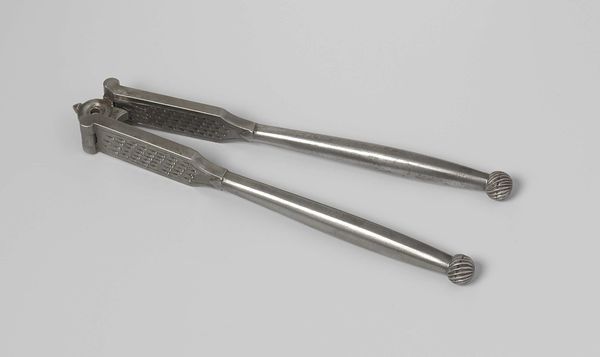 Curator: It’s such an elegantly crafted object, wouldn’t you agree? This is a pair of sugar tongs, known as “Haardtang,” made from silver, sometime around 1788. Editor: Absolutely. There's a delicate precision to it, a sort of understated grace. I find myself thinking about the performative aspects of handling something like sugar. The subtle flex of the tongs, the considered placement—it all speaks to rituals around consumption and status. Curator: Indeed, considering that sugar production in the late 18th century was deeply entangled with colonialism and the transatlantic slave trade, the ritual itself carries significant weight, especially when considering the users and makers of luxury commodities like this. Sugar became widely available, but what were the social costs of satisfying that sweetness? Editor: That's a crucial point. Were these tongs designed to mask the origins of the product it handles? Do its graceful curves belie the brutal realities of labor that produced the very commodity it was made to serve? One could argue it aestheticizes that relationship, normalizing an unjust system of global exchange. Curator: And what does it tell us about the identities of those who owned and used such objects? In the drawing rooms and dining tables of Europe, sugar tongs such as this weren't just functional tools. They signaled refinement, privilege, a certain level of social distinction—especially for women tasked with maintaining their households. Editor: Precisely. Consumption, presentation, and domesticity were intimately linked. The silver reflects not just wealth, but also specific expectations placed upon women. How their performances of 'good taste' reinforced a gendered social order. It goes far beyond simple elegance, then, to speak to the intricate choreography of class, gender, and power. Curator: Thinking about that performance reminds me how museums are now reconsidering such domestic objects, highlighting those forgotten stories, broadening their narratives, questioning the role these objects played and continue to play in reinforcing power structures. Editor: And that critical reassessment is crucial, as we use these artifacts as conduits for challenging comfortable, linear art historical accounts. What feels simple is almost always underpinned by profoundly complex issues. It certainly leaves me thinking differently about this small object now.