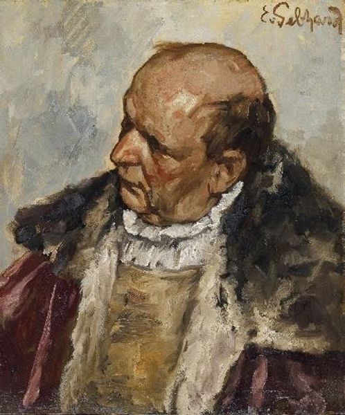 This is Eduard von Gebhardt’s ‘Portrait of a Man With Beret,’ likely painted in the late 19th or early 20th century, using oil on canvas. While portraiture has a long history, Gebhardt’s brushwork feels particularly attentive to the texture of skin, fabric, and even the way light reflects off these surfaces. Looking closely, you can see how he’s built up the image layer by layer, almost sculpting with paint. This wasn't just about capturing a likeness; it was about conveying the weight and feel of the materials he was representing. This work shows how painting could be aligned with craft traditions, where the maker's skill and attention to material detail are paramount. It also reflects a broader shift in art, towards a more grounded, tactile approach, challenging older hierarchies that favored idealized representations over the messy realities of everyday life.