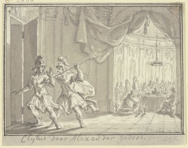 This print, made in 1815 by an anonymous artist, depicts the Queen visiting the wounded Prince of Orange. It’s rendered in a modest technique – likely a combination of etching and engraving, printed in black ink and then carefully hand-colored. These were standard methods for producing images quickly and affordably at the time. Consider the context: this image wasn't intended as a precious artwork but rather to be circulated widely, reinforcing the monarchy's image in a time of political change. The linear precision of the etching captures the scene's details, from the ornate interior to the figures' costumes. The addition of color, though applied by hand, lends an air of realism and vitality. Yet, the very process of mass production and hand-coloring speaks to the mechanics of image-making and royal propaganda. Ultimately, this print underscores how an ostensibly simple medium can be deeply embedded in the social and political currents of its time, blurring the boundaries between art, craft, and political messaging.