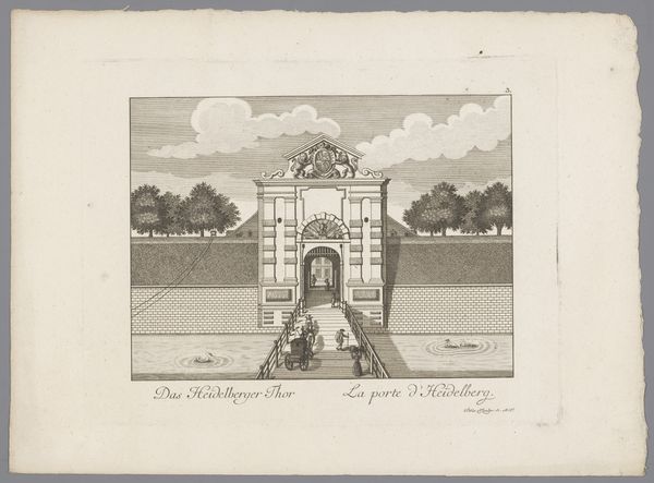 Curator: What a meticulously crafted image! This is an engraving by Jan van Call, created around 1700. It’s called "Gezicht op een buitenhuis in Sint-Annaland," which translates to "View of a Country House in Sint-Annaland." Editor: Immediately, I feel a sense of… measured elegance. The perspective is so controlled, almost severe. The garden looks immaculate, and that building in the distance radiates status. There's also a certain stillness; a perfectly captured moment, yet feels eternally paused. Curator: Precisely. Van Call excels at depicting Dutch Golden Age opulence. We're peering into a world where wealth manifested itself through cultivated nature. See the formality of the landscaping – those symmetrical garden beds, the rows of trees leading the eye directly to the grand house? This isn't just a home; it’s a statement of power. Editor: Absolutely, it speaks volumes about control – over the land, over resources, over social standing. What I find interesting, however, is the inclusion of the figures in the foreground. Are they visitors? Servants? Their presence is understated, yet vital in providing scale. They’re small players, really, in the grand scheme of the villa's narrative. The house looms large and commands their behavior. Curator: You bring up a critical point about scale. And if we look closer at the engraver's skill, the intricate detail in those gardens! He even suggests depth and shadow, despite using just lines and shading. Think about the labour and resources involved in both maintaining this estate and documenting it in this form! It speaks volumes about the priorities of the time. It serves as a clear message: look how successfully and luxuriously we live. Editor: True, the image embodies both aspiration and exclusion, doesn't it? A beautifully crafted piece, undeniably, yet steeped in the sociopolitical context of its age. The cost for others and to the environment perhaps not visible, not yet imagined. Curator: The details in the facade and landscaping really tell a story, don’t they? Editor: Definitely something to ponder on as we walk through the Dutch Golden Age exhibition! Curator: Indeed! And perhaps find some seeds to plant, though I don't expect such geometrically rigorous beds in my backyard.