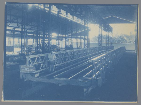 This photograph from 1931 shows eight bridge sections, likely made of steel. We don’t know who took the picture, but it captures a fascinating moment in the production of infrastructure. The sheer scale and weight of the bridge sections are immediately apparent, emphasizing their material presence. Notice the modular construction, held together by countless rivets. This reveals a process of fabrication that values precision and repetition; probably these components were made with some degree of automation, and then assembled by skilled laborers. The image suggests an efficient system of production – a well-oiled machine, in a sense, that is geared toward the expansion of trade and transportation. The bridges were destined for the Dutch East Indies, revealing how this process was embedded in a colonial context. Ultimately, this image prompts us to consider the labor, technology, and social forces involved in the creation of even the most utilitarian of objects, and challenges our conventional ideas about the meaning of design and craft.