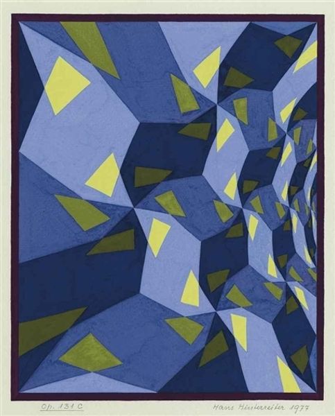Stanley William Hayter created this print, titled 'Salt Wave,' using engraving and soft ground techniques. The immediate impression is one of fluidity and depth, dominated by concentric circles and curvilinear forms in shades of blue and black. Consider the circle, an ancient symbol of totality, eternity, and cyclical movement, found across cultures from mandalas to Celtic art. Here, it suggests the ceaseless motion of the sea, a rhythm both comforting and formidable. Notice how the wave-like patterns evoke the subconscious pull of the ocean, resonating with the primal human connection to water. We see echoes of Hokusai's 'Great Wave,' but abstracted, internalized. This print is not merely a depiction of water, but an emotional landscape. It taps into our collective memory, engaging a deep, subconscious understanding of nature's power and beauty. The ocean's waves keep resurfacing in art across time, evolving, and taking on new meanings in different historical contexts.