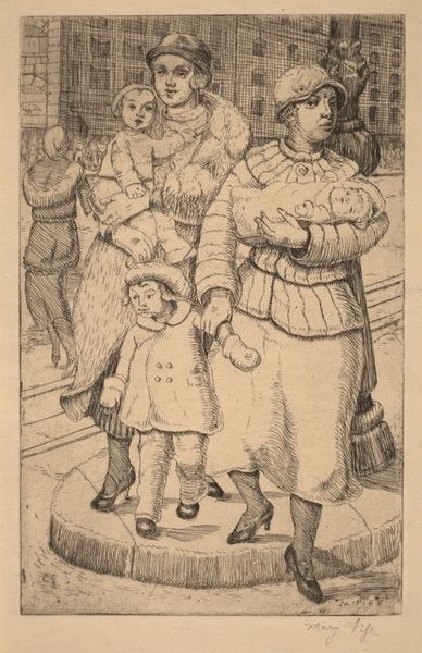 Jessie Willcox Smith made this drawing, titled "Young Girl with Muff," using charcoal or graphite on paper. It's easy to overlook drawing as a 'lowly' medium, compared to painting or sculpture. But this preparatory sketch would have been crucial to Smith’s illustrative work, which gained considerable popularity through magazines and books. Notice the material qualities here - the granular texture achieved with dry media, the artist's precise control of tone. Smith has built up the form of the girl with tight, controlled strokes, modulating pressure to suggest the fall of light across her form. The clothing and the backdrop seem to float into focus with a high level of clarity that dissolves into the background. The social context is important. Smith was one of the leading illustrators of her day, and she made a good living. The drawing embodies skilled labor, aesthetic awareness, and a keen sense of visual communication. This all goes to show that 'commercial' art can be just as compelling, and meaningful, as the kind you see hanging in museums.