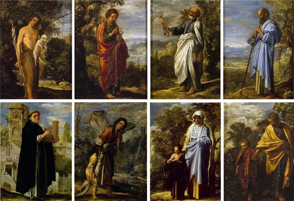Curator: Let's consider this Altar with six scenes from the life of the Virgin Mary by Adam Elsheimer, painted around 1598. The work is a fascinating example of narrative art rendered in oil paint. Editor: Oh, I love this! It's like a visual hymn, the stories laid out almost like stained glass windows on a single panel. Each little scene is charged with so much emotion! Curator: Exactly. It presents us with a multi-part narrative and really displays how paintings operated as accessible devotional objects during this time. Focusing on the material conditions of its creation— the ready availability of pigments and support—we see its production situates the piece firmly in the Italian Renaissance. Editor: True! But for me it's also those intimate moments. Like in the Annunciation; Mary's expression isn't just piety, but this little flicker of, what, disbelief? or the vulnerability radiating from her as she receives news she will become the mother of God... So delicate. Curator: Precisely. Considering the time, Italian Renaissance artwork operated largely under the support and patronage of the Catholic Church; this in part, dictates the chosen material and subject matter within painting production at the time. Editor: What a beautiful production! And there is some creative flair! How he catches the light… it almost dances across each miniature canvas. Makes one want to just step inside each little world. Curator: I would agree. If you look at Elsheimer's piece within a broader understanding of materiality and labor, you find an Italian Renaissance, in which artistic expression had direct connections to religious and cultural contexts. Editor: I'll say. Each image evokes its own separate feelings of hope and tenderness in my heart. Curator: It’s truly striking how the convergence of material and subject creates an impactful historical narrative.