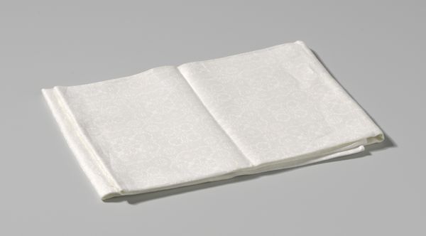 This table runner in white linen damask, bearing the Wheble family crest and the motto "LABORE ET INDUSTRIA," or "by labour and industry", was likely made by the Royal Ardyone Manufactory. Linen damask is created through a weaving technique on a loom, where patterns are formed by manipulating the warp and weft threads. The choice of linen, a durable yet luxurious material, reflects the status of the Wheble family. Damask weaving, with its intricate patterns, requires specialized knowledge and skilled labor. The heraldic design woven into the fabric speaks to the family's identity, and their investment in commissioning such an item indicates their economic and social standing. This table runner embodies the values of "labor and industry" not only through its design but also in its production. The process-intensive nature of damask weaving and the use of high-quality linen connect the object to broader issues of labor, class, and consumption, reminding us that even the most functional objects can carry significant cultural and social meaning.