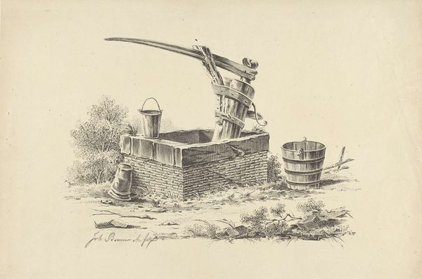 Editor: This pen and ink drawing, titled "Waterraden" by Barend Hendrik Thier, was created around 1780 to 1800. The drawings show two water wheels; one feels almost grand, while the other seems more weathered and grounded. What’s your interpretation of these drawings, thinking about the social context of the time? Curator: It’s interesting that you highlight the contrast between the two wheels. Consider the period—the cusp of industrialization. Watermills represented a shift in power dynamics, moving away from human or animal labor. Thier's choice to depict these water wheels in such detail can be read as a commentary on the changing socio-economic landscape. Does the grander wheel, in your opinion, reflect the promise of progress, or perhaps a veiled critique of industrial dominance? Editor: I hadn’t thought about the power aspect directly, but it makes sense. The artist’s rendering gives it that quality. I can see how it touches on labor and the rise of industrialization. How does it all connect to our current environmental discourse? Curator: These wheels also connect to today's environmental concerns. They remind us of simpler, more sustainable technologies before fossil fuels. Seeing them can provoke conversations about environmental justice. Can we use historical technologies to inform present ecological issues? Does thinking about past models help us now? Editor: Yes, definitely. Considering water wheels in this context really helps frame a conversation around historical labor practices and environmental implications for our present reality. Curator: Absolutely, and by analyzing pieces like “Waterraden”, we can unearth the deep-seated connections between art, labor, and the environment. Hopefully, it sparks action towards more equitable and sustainable solutions.