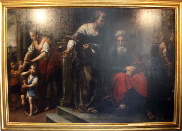 Curator: Domenico Beccafumi’s "Coronation of Mary (detail)," painted around 1540 with oil, depicts Mary and other figures. Editor: There's a certain weightiness to the scene, a seriousness in their expressions. What strikes me is the clear emphasis on intellect, with books held by many of the figures. What's your take on this, particularly given the historical moment? Curator: It's crucial to understand the Council of Trent's impact. The church's authority was under fire during the Reformation. Representing Mary surrounded by learned figures, immersed in religious texts, aimed to reinforce the Church's intellectual foundations and counter Protestant arguments. Do you think the figures embody any traits, perhaps ideals from a male or female perspective? Editor: It’s interesting you point that out. There are 2 men, looking straight into an open book as if seeking for information, while the 2 women show no concern for them and are deeply concentrated with more relevant aspects. I’d dare to suggest that Beccafumi made use of Renaissance models and then offered an unusual twist that defies traditional female passivity, which might indicate emerging, more assertive female roles, but then it would fall in line to reinforce that only knowledge, or 'approved' information could set you free... so there would not be any emancipation, right? Curator: Precisely. It becomes about control—the selective use of knowledge, channeled through acceptable interpretations of scripture, reinforcing the power structure during a period of religious upheaval. So this piece engages in very intricate, politically charged arguments on both sides. Is the painting truly depicting spiritual enlightenment or intellectual gatekeeping? That is the question it evokes in me. Editor: That's made me see it in a completely new light. What I initially saw as a simple, devotional image is now a complex commentary on religious authority and social control. Thanks so much. Curator: The beauty of art history is exactly this type of revelation; thank you for allowing me to look into this amazing piece, together!