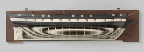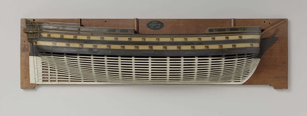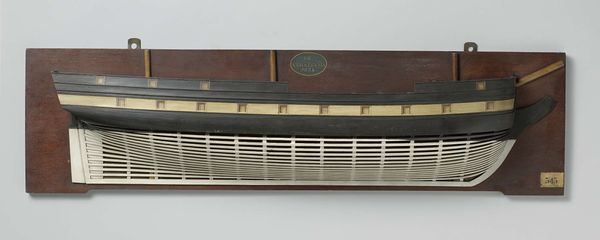 Editor: Here we have the "Half Model of an 18-Gun Brig," crafted around 1826 by an anonymous artist. It's made of wood and metal, and it strikes me as incredibly precise, almost mathematical in its construction. What story do you think it has to tell? Curator: The story, or rather stories, are numerous and complex. We need to acknowledge the deeply rooted historical context in which this piece exists. While seemingly innocuous, this model speaks volumes about maritime power, trade, and, inevitably, the transatlantic slave trade. How do you think the sleek, almost sterile presentation of the model aestheticizes a violent history? Editor: I see your point. It's easy to get caught up in the craftsmanship and miss the connection to, you know, the brutal realities of naval power at the time. But where do you even begin to unpack all of that? Curator: Precisely! The model operates as a potent symbol of colonialism and exploitation. Every detail, from the guns it represents to the timber used in its construction, is tied to resources extracted from colonized lands and labor of enslaved people. Can we view it as simply an object of beauty or craftsmanship, separated from that history? Editor: I suppose not. It is unsettling to think about the violence this represents, presented so cleanly. So it becomes this constant balancing act of appreciating skill while acknowledging the ugliness intertwined? Curator: Exactly. We must actively engage with these tensions, recognizing that historical context informs our present understanding. This piece is not simply about naval architecture, but about power, extraction, and the legacy of colonialism that continues to shape our world. To analyze this half-model you must ask who profits from it? Then and now. Editor: Thanks, that is a really insightful reframing that helps make the sculpture resonate differently and reveals some of its uncomfortable truths.