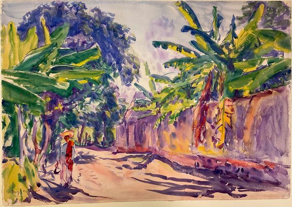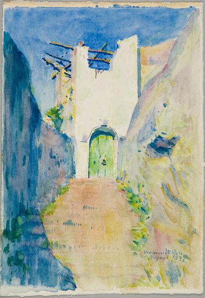 Curator: Dodge Macknight’s watercolor, Apple Tree, Spring Hill, Barnstable, Massachusetts, captures a bright scene in what looks like a quiet neighborhood. Editor: It's undeniably cheerful; the loose washes of color evoke the vibrancy of new growth against the quaint architecture. Curator: Absolutely. This painting resonates with the turn-of-the-century embrace of Impressionism, reflecting the changing social landscape where leisure and the observation of nature became valued pursuits. Macknight's choice of watercolor was key, allowing for spontaneity. Editor: How does that connect to the emerging feminist viewpoints of the time, in terms of women’s rights and social structures? Curator: Well, watercolor was often associated with female artists, so his embrace of it could be read as a challenge to established artistic hierarchies. Also, the domesticity of the scene offers a lens into gender roles and the idea of home as a site of both comfort and confinement. Editor: That's a really interesting lens. It adds layers of meaning beyond just a pleasant landscape. Curator: Indeed, it's about understanding how art reflects and shapes our perceptions of the world around us.