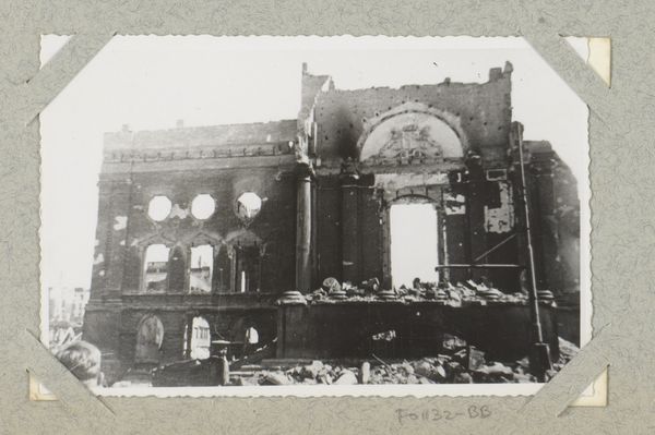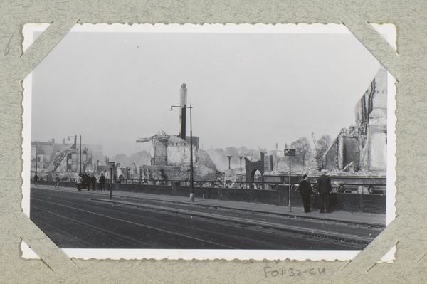 Curator: Here we have "Salvage Operations at a Shipwreck," a gelatin-silver print by Folkert Idzes de Jong, likely created between 1905 and 1907. It's a stunning example of Pictorialism in photography. Editor: It's strangely captivating. There's a somber, almost elegiac quality to it. The muted tones lend a dreamlike feeling, despite the stark subject matter of industry and disaster. Curator: Indeed. Notice how de Jong used the soft focus to diffuse the light and create a hazy atmosphere? This was a common technique of Pictorialists who sought to elevate photography to the level of fine art. Think about the labor that went into this image and its afterlife as something displayed. Editor: It evokes the precariousness of human endeavor against the forces of nature. The shipwreck, a symbol of failure, contrasts with the lighthouse, meant to be a symbol of hope and guidance. Is it a futile hope? Curator: That interplay is what makes the image so compelling. The image isn't about pure aesthetics or even simply the historical documentation of an event. What does the image *do* as it shows men extracting materials from a wrecked vessel? How does that affect economies of industry or domestic labor? Editor: I'm also drawn to the two figures in the foreground. They almost seem to be contemplating the scene, giving it a human scale against the industrial wreckage. Their dark silhouettes feel weighed down, too. It’s a meditation on time and loss. What kind of toll do such spectacles demand on our memories? Curator: Precisely. It reveals an interesting tension between the monumental effort to extract and reclaim what's lost, while also underscoring the immense power – destructive power – that human-made goods are subject to when the elements collide. Editor: It is interesting to me that something broken holds our gaze for longer than we think. In the symbol of the wreck, we see the shadow of time pass over labor and innovation and that perhaps they, too, are also fragile and impermanent, as with the figures standing as shadows by its side. Curator: Thank you, this highlights some essential components we will be back with a future piece later in the week! Editor: Thank you for the dialogue!