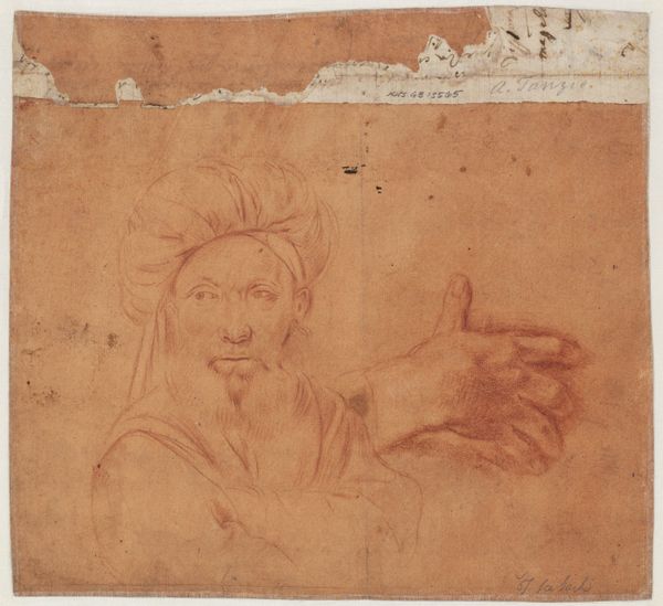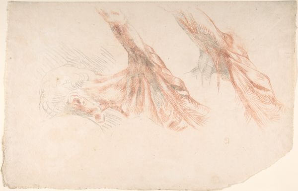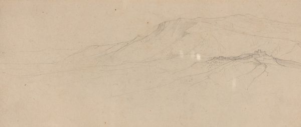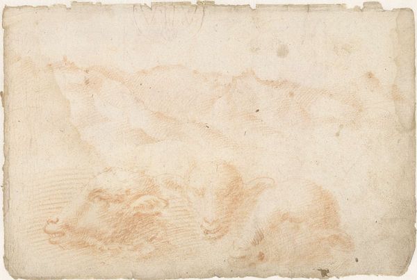 Antonio d'Enrico Tanzio, also known as Tanzio da Varallo, created this landscape with mountains using red chalk on paper. The earthiness of the chalk mirrors the subject, a rugged mountain range rendered with flowing lines. The artist’s hand is evident in the expressive strokes, a traditional method of sketching during the 16th and 17th centuries, that allowed for the quick capture of form and light. Drawings like this were not made for public display, they are more for internal consumption and reflection. What’s fascinating is the economy of means. The image, rendered in a reddish hue, speaks volumes about the terrain—its textures, its peaks, and valleys. This directness invites us to consider the labor embedded within the landscape itself, both the geological forces that formed the mountains, and the human toil involved in inhabiting and traversing it. By focusing on process and material, we move beyond the image to consider the wider cultural and historical context that shaped both artist and subject.