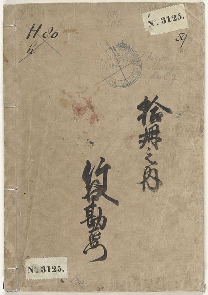 Katsushika Hokusai created this print, part 14 of 'Sketches by Hokusai,' likely in the early 19th century. The subdued palette and textured surface initially evoke a sense of quietude. Notice the vertical band to the left, filled with dense calligraphic forms enclosed within a stark, outlined box. The characters are a key structural element, anchoring the composition. The off-white paper, aged and subtly stained, allows us to see the process of creation. The marks and notations, almost like palimpsests, add layers of meaning. Hokusai employs a semiotic system here, where each stroke and character is a sign. The composition of this print destabilizes traditional notions of artistic representation. It prompts us to question fixed meanings and cultural codes, engaging with new ways of perceiving space and representation. The print challenges us to look beyond the immediate and consider the layers of cultural and artistic meaning.