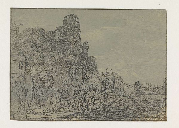 Editor: This drawing, "View near Nice: The Rock on the Sea Shore" by John Downman, captures a rugged coastal scene. It feels so understated. What stories do you see embedded in this seemingly simple image? Curator: I see a negotiation between the picturesque and the real. This scene, while seemingly natural, is mediated by viewpoints accessible to a particular class. Notice the strategically placed figure on the bridge. Who is invited to enjoy this view, and who is excluded? Editor: So it's not just about the beauty of nature, but about access and privilege? Curator: Exactly. Downman’s work prompts us to consider the social dimensions inherent in landscape art and the public role that artwork plays in shaping our understanding of the world. Editor: That's a fascinating perspective, it really changes how I see the drawing. Curator: Indeed. It reminds us that art doesn't exist in a vacuum; it reflects and shapes the world around it.