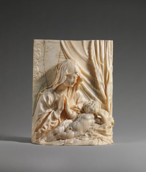 Tilman Riemenschneider crafted this limewood sculpture of the Annunciation sometime in the late 15th or early 16th century, during a period of profound religious and social change. Riemenschneider, working in a society steeped in religious doctrine, infuses the scene with a palpable sense of humanity. The sculpture depicts Mary at a pivotal moment, her expression caught between surprise and acceptance. Kneeling at her prie-dieu, she becomes a vessel of divine will. Yet, her humanity is what resonates here. The sculpture invites us to consider the intersections of faith, gender, and power. Mary, a young woman, becomes central to Christian theology, challenging traditional patriarchal structures even as she submits to them. Riemenschneider's interpretation navigates these complexities. In doing so he offers a nuanced portrayal of female agency within the confines of religious expectation.