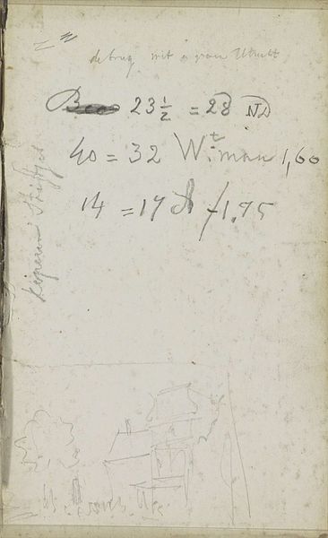 George Hendrik Breitner created this notebook page sometime during his lifetime, using graphite on paper. Breitner was a key figure in the Amsterdam Impressionism movement, capturing the city's vibrant, rapidly changing urban life. This particular page, filled with annotations, offers an intimate glimpse into the artist’s working methods. These are the underpinnings of the paintings and photographs that came to define the modern city. The scrawled notes and sketches are a sharp contrast to the polished works displayed in galleries and museums. It reveals the institutional framework in which Breitner operated. He was not just an artist but a businessman navigating the art market. Art historians often use these kinds of primary sources, like sketchbooks, letters, and exhibition catalogs, to understand the social and economic conditions that shape artistic production. By examining the context in which art is made, we gain a deeper appreciation of its meaning and significance.
