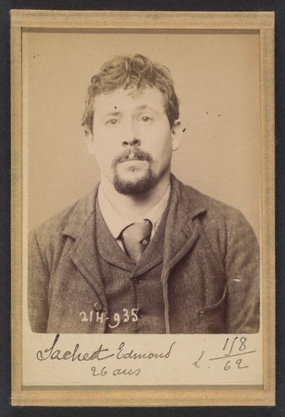 This is a mugshot taken in France on March 14, 1894, by Alphonse Bertillon using photography and paper. Here we see Gustave Aguéli, a 24-year-old Swedish artist and anarchist. Bertillon was a French police officer and biometrics researcher who pioneered the use of photography for criminal identification. His “portrait parlé,” or speaking portrait, was a system of detailed measurements and standardized photographs intended to create a reliable record for law enforcement. This image raises questions about the relationship between art, crime, and social control. Anarchism, a political philosophy advocating self-governed societies based on voluntary institutions, was viewed as a threat to the established order in the late 19th century. As such, the institutional power of the police sought to document and categorize individuals deemed dangerous. To understand this image better, historians might consult police archives, anarchist publications, and art historical sources. This mugshot serves as a reminder that art and its interpretation are always embedded in a specific social and institutional context.
