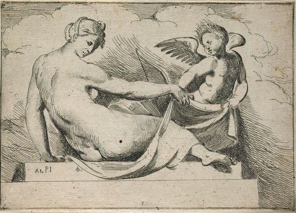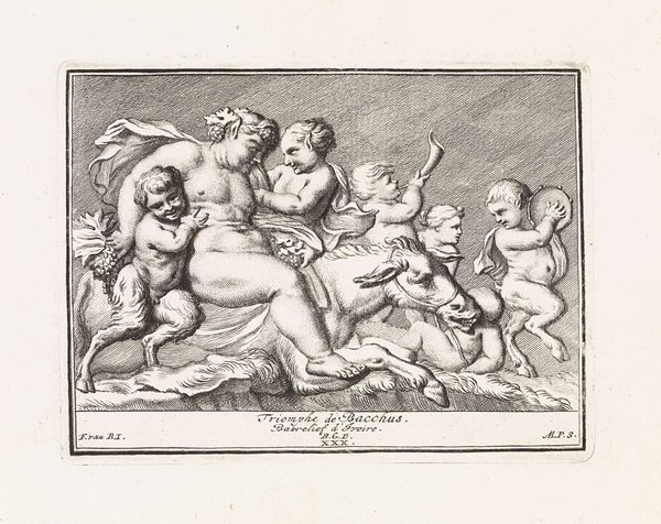 Editor: So, this engraving is called "Three Cupids and Two Dolphins," dating roughly from 1599 to 1622. It's by an anonymous artist, and based on the inscription, it appears to be an engraving after a drawing, and the drawing based on an even older cameo. It gives off this fascinating Neoclassical vibe. What strikes you about this piece? Curator: Well, considering its reproductive function, let’s think about the socio-economic status tied to disseminating imagery at that time. Who commissioned these engravings, and for what purpose? Was it intended for an elite audience of collectors or artists who could afford these kinds of reproductions to inform their own practices, or was its availability and reception more widespread? Editor: That’s an interesting angle! I hadn't considered the accessibility of art back then and how prints like this might democratize access to classical imagery. Does the medium itself—the engraved line—influence our understanding of the subject matter? Curator: Absolutely! The very act of translating three-dimensional form into linear, reproducible marks has significant implications. Consider the labor involved, the skill required to mimic the forms of sculpture, and the way value is created through this repetitive, almost mechanical process. It's also key to look at the types of patronage active during this time and its relation to visual culture and the consumption of art objects. Editor: I see what you mean. It's not just about the image itself, but the whole system of production and consumption surrounding it. So this image is less about ‘beauty’ and more about understanding its place in a wider historical and economic framework? Curator: Precisely. By analyzing the materiality of the engraving—the paper, ink, and the skill of the engraver—and situating it within its social context, we can gain a much richer understanding of its purpose and value. We're focusing on how it was produced and consumed to derive meaning. Editor: Thanks, it definitely changed how I see this artwork! I'll definitely look for this production context more when I'm looking at older artworks. Curator: You’re welcome. I hope our discussion today encourages you and others to consider a materialist perspective when studying and interacting with artworks in the future!