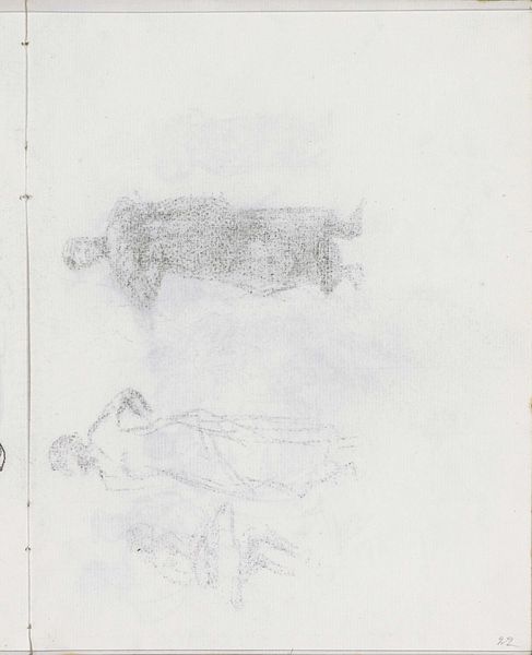 Isaac Israels created this chalk drawing on paper, titled "Abklatsch van de krijttekening op blad 14 verso," but the exact date remains unknown. Israels, working during a time of significant social change and industrial expansion, often captured everyday life, and this sketch offers an intimate glimpse into his process. The smudged quality evokes a sense of fleeting moments, akin to memory itself. Consider how Israels, as a Jewish artist in Europe, navigated questions of identity and belonging during a period of rising nationalism. It invites us to contemplate the stories embedded within the mundane, the overlooked, and the tentative marks of an artist's hand. In this way, the sketch becomes a mirror, reflecting our own experiences of seeing and being seen.