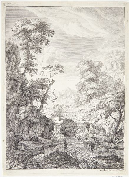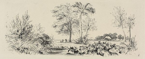 Johannes Janson created this etching of a landscape with cattle in a river in the Netherlands sometime in the 1700s. It reflects the cultural interest of the time in pastoral scenes showing the lives of ordinary people. Here we see the influence of the Dutch Academy in the artist's use of line and composition. The print uses a high horizon line, framing rural figures within an idealized landscape that includes cattle, herdsmen, and bodies of water. Consider the politics of imagery in 18th-century Netherlands; this etching romanticizes rural life and glosses over the difficult labor of animal husbandry. We can understand the social conditions that shaped artistic production, as wealthy landowners collected such prints as symbols of their own power and status. To understand this work better, we can consult archives, letters, and other documents that reveal the public role of art in the Netherlands at this time. The meaning of art is contingent on the social and institutional context that shapes it.