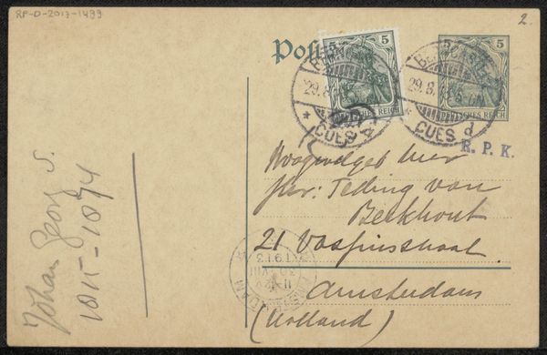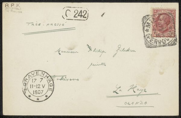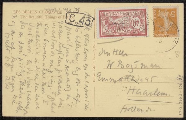 This is a postcard to Philip Zilcken, created by Leopoldo Bizio Gradenigo, and postmarked September 4, 1916. On the back, we see stamps and a censor's mark, reminders of its journey across borders during World War I. The handwritten message in French speaks of gratitude and resilience amidst disaster, likely referring to wartime events. The line ‘Malgré le désastre de I. Maria Formosa, non palais resta prodigieusement intact’ reveals a personal connection to the destruction. This postcard transcends its simple form, becoming a poignant artifact of personal correspondence marked by the upheaval of war. How did Gradenigo navigate his identity and artistic expression during this period of conflict and uncertainty? And what did it mean for Zilcken to receive such a message, knowing it had to pass inspection? In its small way, this postcard serves as a symbol of human connection, carrying hopes and memories across a world in turmoil.