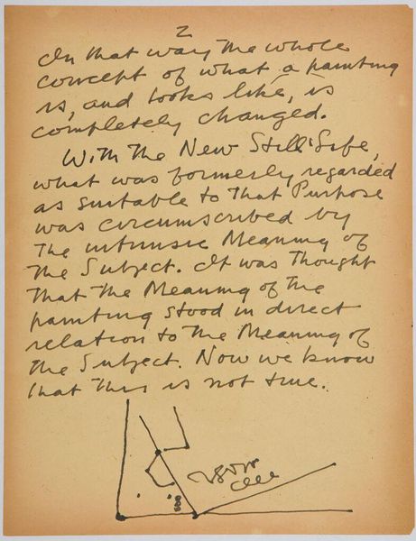 Curator: This is an intriguing piece by Stuart Davis, held at the Harvard Art Museums, titled "Art Theory Text with Types A and B Configuration Diagrams and Free Form Sketch." Editor: It feels like a visual stream of consciousness, a chaotic blend of text and abstract shapes. The handwriting gives it a very personal, almost intimate feel. Curator: Davis often combined textual elements with his compositions. This piece, though undated, likely reflects his deep engagement with abstract art theory, evident in the detailed textual observations. Editor: The phrase "cacophonous serenity" really jumps out. It's a beautiful contradiction, suggesting a harmony born from dissonance. It makes me wonder, was Davis finding a unique order in the chaos of modern life? Curator: Perhaps he was exploring the generative potential within structured systems, which is why the "Types A and B Configuration Diagrams" are so important. He's exploring how these shapes and words create meaning. Editor: Seeing this, I feel an echo of his creative process, the artist working through thoughts and possibilities. It's as if we are looking at a page of his mind. Curator: Yes, I agree, and it gives us a deeper understanding of his artistic development. Editor: I'll carry that chaotic serenity with me, a reminder that even dissonance can have its own strange harmony.