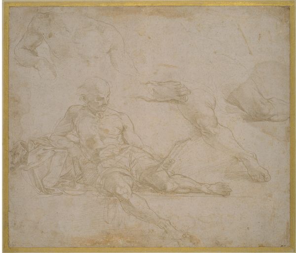 Luca Giordano’s "Reclining Child," at the Art Institute of Chicago, captures a tender, intimate moment with simple strokes of pen and brown ink. The drawing presents a child in repose, limbs akimbo, floating in a pale field. The form is loosely defined through a series of gestural lines. Notice how Giordano uses a minimal number of marks to convey the roundness of the head and the soft flesh of the limbs. This economy of line, this deliberate paring-down, directs our attention to the essence of form rather than precise detail. Consider the semiotic implications of the reclining pose. Traditionally, this is a position of rest, vulnerability, and surrender. Yet, the upward reach of one arm introduces a dynamic tension. The formal tension mirrors the complex psychological states of early childhood. Giordano’s use of line and form invites contemplation on the transient nature of childhood, its inherent tensions, and its foundational place within the human experience. The drawing functions as a space of thought, asking us to consider not just what we see, but how we see and interpret the forms before us.