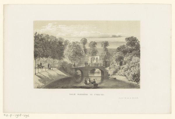Editor: Here we have "Gezicht op Balgonie Castle", an etching and engraving from 1801 by James Fittler. I’m struck by the way the imposing castle in the background contrasts with the small figures on the bridge. What does this composition suggest to you? Curator: That contrast is key. These kinds of landscape prints gained popularity at a time of great social change. Think of the rise of the middle class and the decline of feudalism. How does portraying the castle, a symbol of power, in the distance, while ordinary people occupy the foreground, reflect these shifts in power dynamics? Editor: So, it's not just a pretty picture but a statement about a changing society? Curator: Precisely. Also, consider the Romantic movement at the time. They were fascinated by ruins and nature reclaiming civilization. This image uses landscape and architecture to communicate about history. Notice how nature almost obscures the castle. Editor: It's as if nature is encroaching on human dominance, reflecting on mortality, perhaps? What do you think about the public role of a work like this, beyond just being aesthetically pleasing? Curator: These prints were widely circulated. They shaped public perceptions of history and national identity. Depicting Scotland’s past in this picturesque way can foster pride, while also perhaps romanticizing a hierarchical past in ways that are politically conservative. Who has access to this image and who does it benefit? That's always my question. Editor: That’s a lot to consider. I thought I was just looking at a landscape, but it is interesting to realize that images like this carry such strong social and political weight. Curator: Indeed! Looking closely, it opens up a whole new perspective on the politics of imagery.