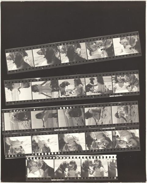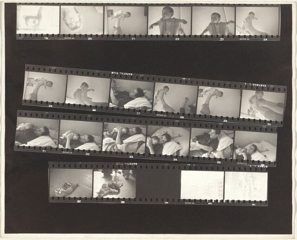 Robert Frank created this gelatin silver print, "Edward Albee and Carson McCullers," the date of which remains unconfirmed. The composition is structured around the filmstrip as a physical object. The series of frames, each a rectangle of varying exposure, presents an almost stroboscopic sequence of the two figures. We see the use of light and shadow, and the granular texture inherent in the medium. The repetition introduces a rhythmic element, yet the subtle shifts in each frame prevent any sense of uniformity. This artwork challenges the traditional notion of a singular, decisive photographic moment. Instead, Frank offers a sequence, a passage of time. The filmstrip itself becomes a signifier of process and temporality, disrupting the idea of a fixed, stable image. It acknowledges the act of image-making itself. Ultimately, the enduring relevance of Frank's work lies in his ability to continually question and redefine the boundaries of the photographic medium.
